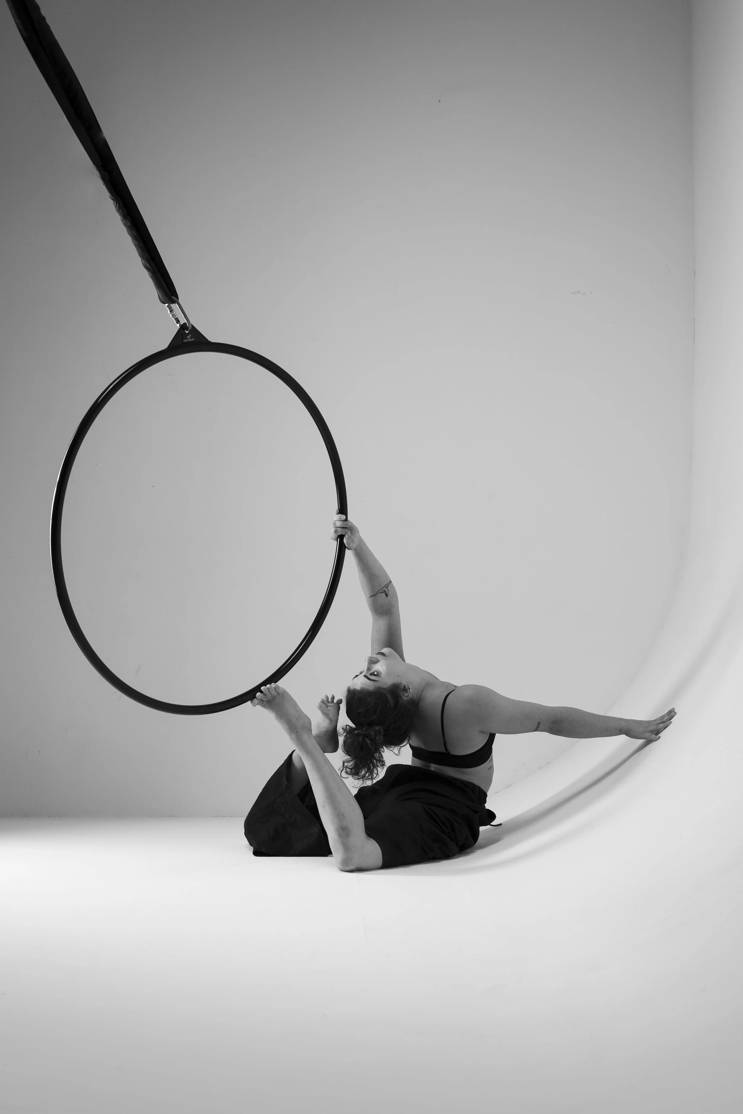 Work with the hoop close to the floor to explore floorwork, grounded transitions, and creative pathways in and out of the apparatus. We will investigate how to build a relationship with the hoop while grounded, how the floor can become an extension of the apparatus, and how transitions between floor and air create rich choreographic material.